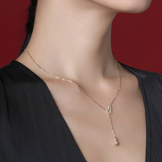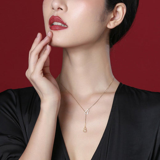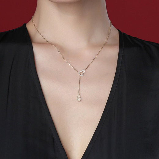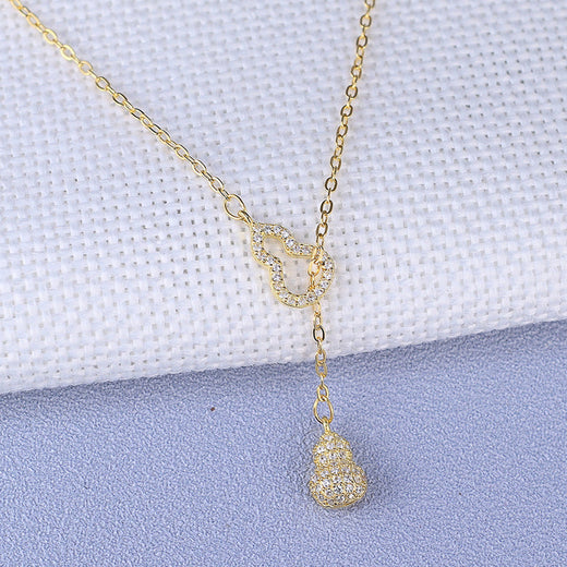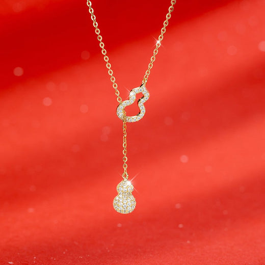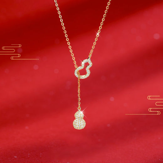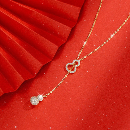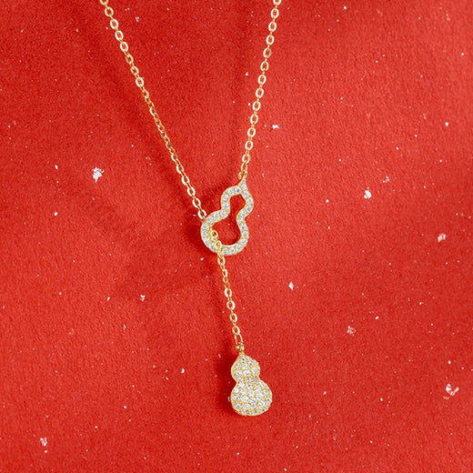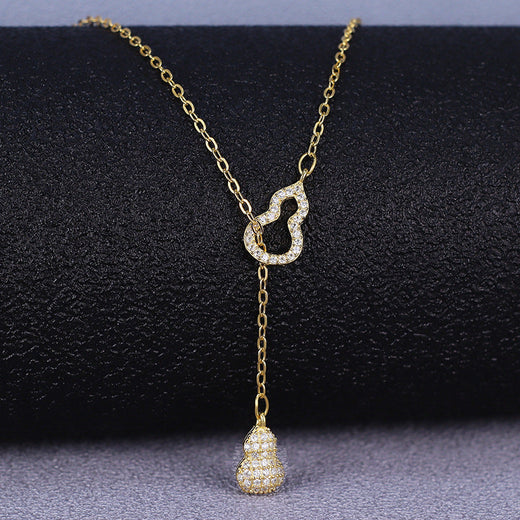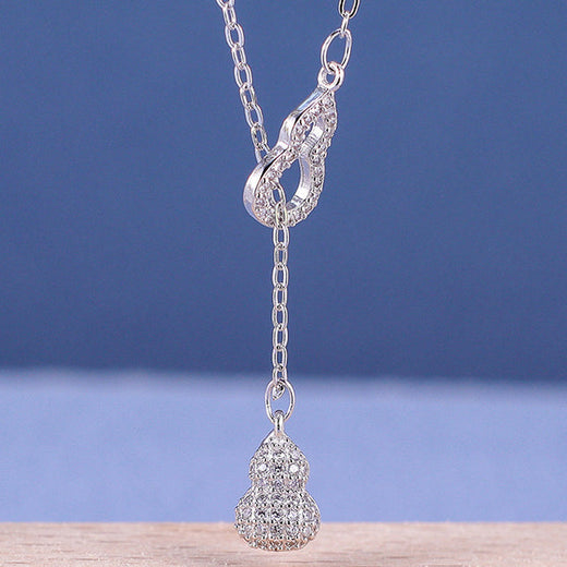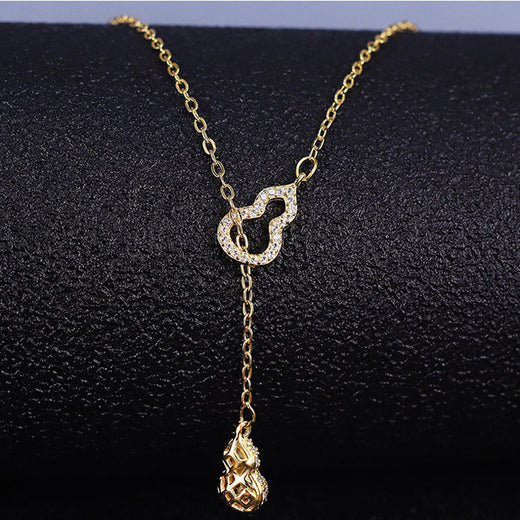 S925 Sterling Silver Lucky Fulu Double Gourd Necklace Clavicle Chain